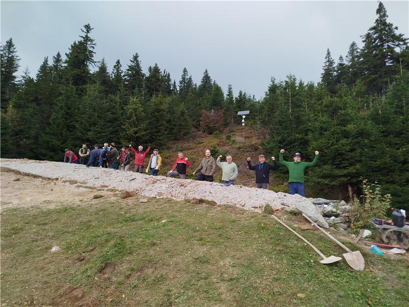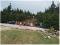Radostnou zprávou je že se sešla skvělá parta a hlavně ji posílil náš Hagrid, který přijel i s vyvážečkou a trpělivě bral připravený kus po kusu a postupně všechny kusy dřevěné konstrukce vytahal a naložil. Ostatní vytvořili živý dopravník na fošny a nakládali vozík za vozíkem, odváželi dolů na přistání.